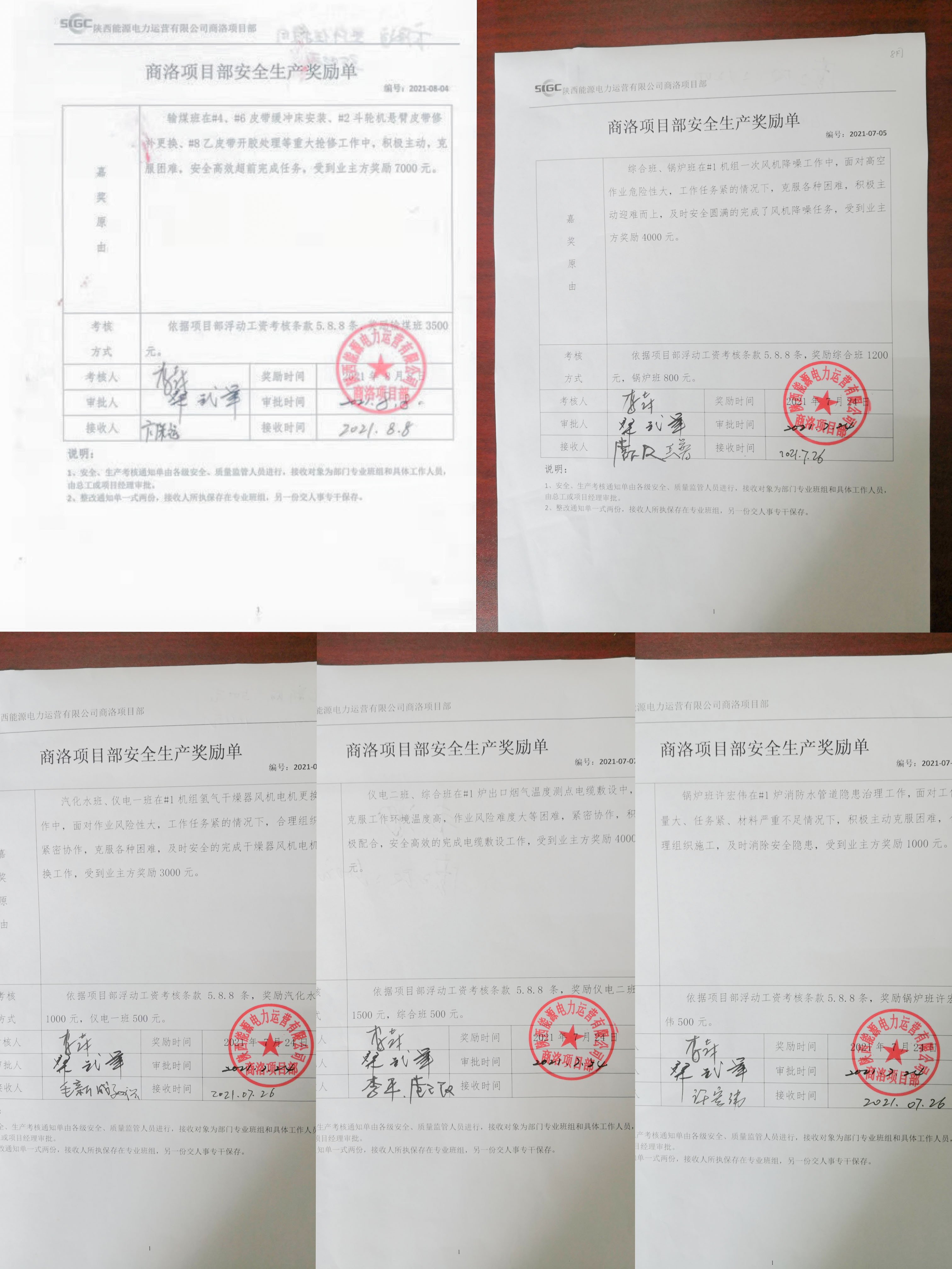 本周,商洛項目部接連收到來自商洛發(fā)電公司的五張獎勵單通知單,獎勵金額共計19000元,以嘉獎在維保工作中表現(xiàn)突出的班組和個人,展現(xiàn)了業(yè)主方對項目部檢修工作中不畏艱難、勇于擔(dān)當(dāng)?shù)摹斑\營鐵軍”的充分肯定。